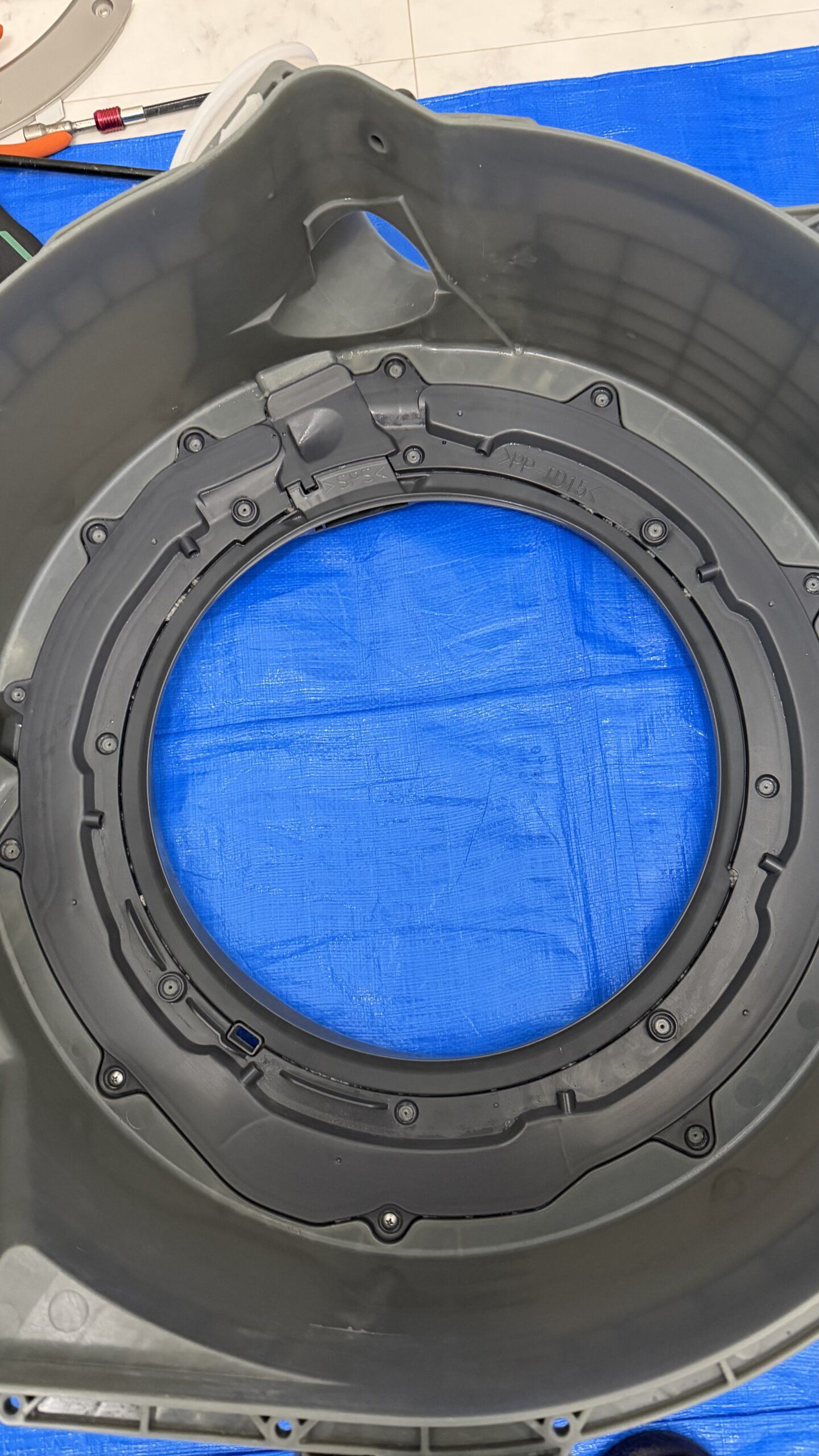 脱水カバーは、洗濯槽周辺の水の流れやバランスを保つための部品です。